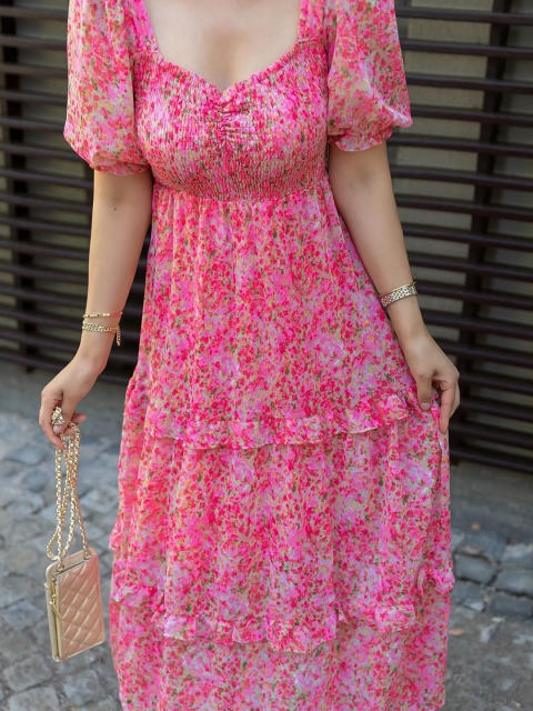 - Pink floral printĀ Fit and Flare maxi dress