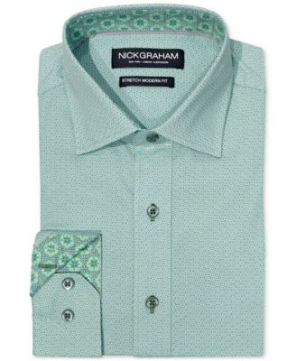 Supercharge your button-down looks with color and a mesmerizing interior pattern when you welcome Nick Graham’s stretch-cotton shirt to your collection.