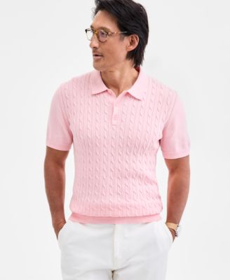 Add a touch of texture to your casual look with the soft cotton and cable-knit styling of this polo shirt from Club Room.