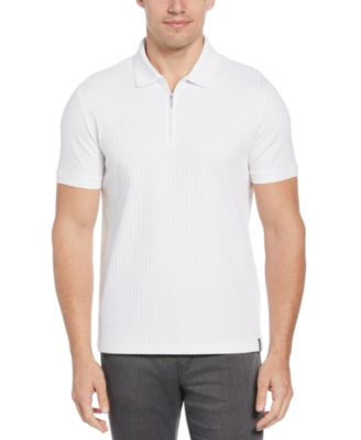Add sporty style to your put-together look with this polo shirt from Perry Ellis. Ribbed fabric adds a slight texture to the surface and pairs perfectly with the quarter-zip placket for a casual edge.
