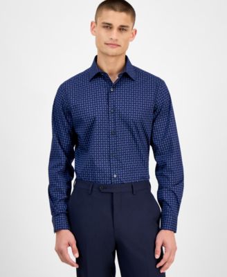 Stride into your next event with confidence and finesse when you build your ensemble around this slim-fit, round-dot dress shirt from AlfaniĀ®.