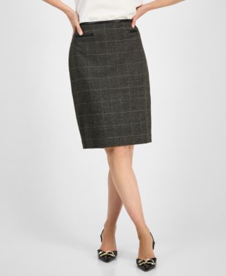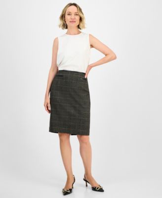 A timeless plaid pattern adds an air of timeless charm to this finessed pencil silhouette by Kasper, mixing classic sophistication with elegant allure.