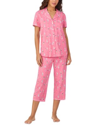 Topped off with a classic notched collar and short sleeves, this printed pajama set from Cuddl Duds is complete with a fresh, cropped silhouette.